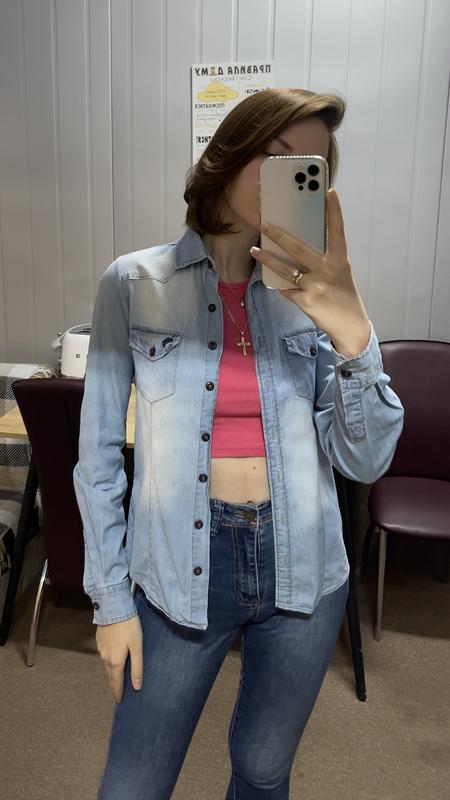 Довжина - 62 см В грудях - 87 см Довжина рукава по зовнішньому шву - 65,5 см Довжина рукава по внутрішньому шву - 51,5 см 100% котон Вдягнуто на параметри 84-64 розмір С, на ХС буде ще краще.