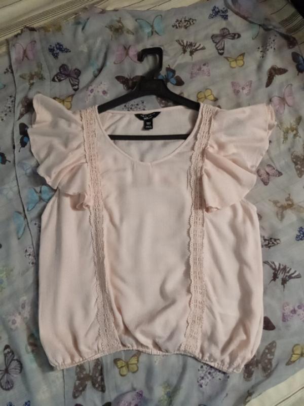 ніжна, длина 50,пог 46, пишний рукав низ на резинці 36, тягнеться до 45,100%віскоза,Комбоджа.,стан хороший.