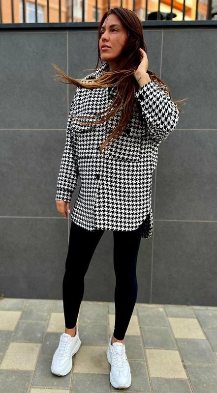 016 🟣 кашемірова сорочка🔵 ▪️тканина : кашемір Турція ▪️колір: чорно-біла лапка ▪️розмір: xs-m oversize m-xl oversize 👀 виміри: ОГ: до 120| до 124 см Довжина рукава: 70| 74 см Довжина: 72| 74 см спереду 82| 84 см позаду