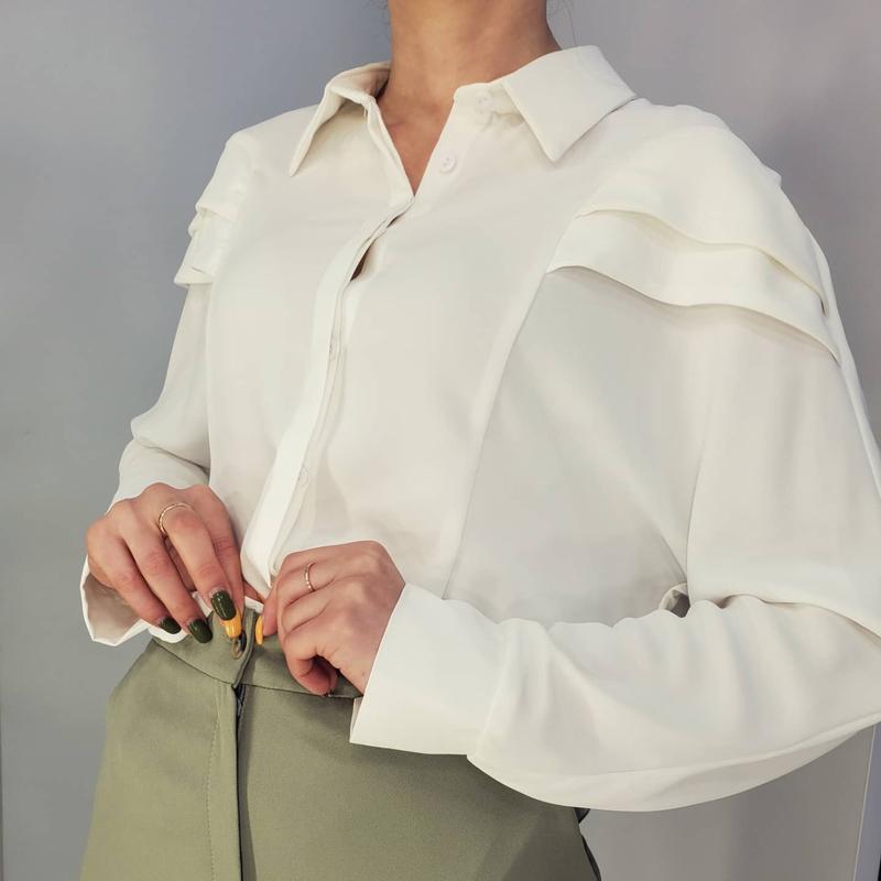 Елегантна жіноча блузка білого кольору. Для створення ділових образів.