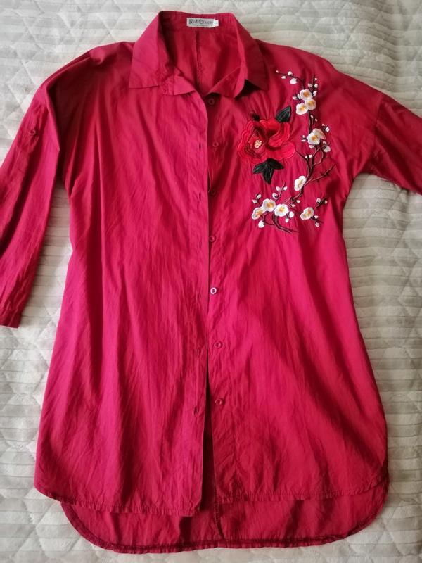 Дуже гарна сорочка, подовжена, вільного фасону, розмір С, ззаду цікава імітація карманів, стан нової.