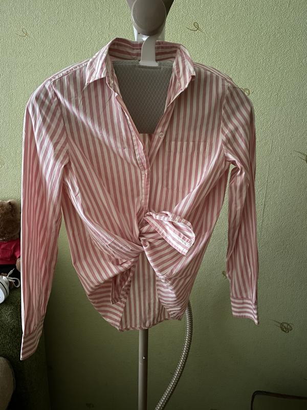 Рубашка белая с розовой полосой, на боку есть разрезы. Другая серо голубая с белой полосой. Один бренд, один размер. Цена за единицу