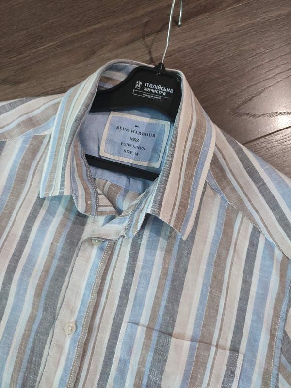 Рубашка Marks & Spencer. Размер указан М. немного большемерит, на (46-48), но лучше ориентироваться на замеры. Замеры: плечи 49 см, расстояние от подмышки до подмышки 59 см, длина рукава 23 см, длина рубашки 79 см. Состав ткани 100% лён. Состояние идеальное.