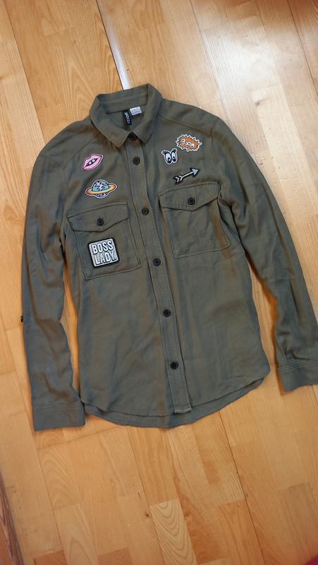 Стильная рубашка с лейбами цвета хакки известного бренда H&M. Фасон свободный. Материал натуральный, мягкий и приятный на ощупь, не тянется. Размер S За подробной информацией, замерами, фотографиями пишите, отвечу всем. Обновления каждый день! Смотрите все мои объявления )