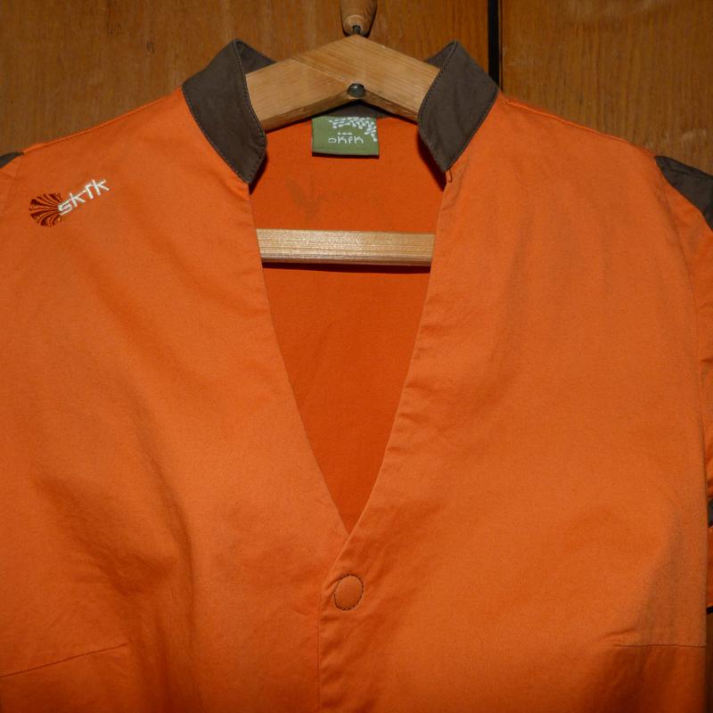 Очень классная, стильная рубашечка, в реале цвет бледно оранжевый с бледно-оливковым, не вызывающий, можно и на работу надевать. Ткань плотная, слегка тянется, состава нет, но, на сколько я помню - это 95% хлопка. Состояние ооочень хорошее. Замеры: плечи 33,5 см., плечо 8,5 см. (слегка завышены) подмышки 42,5 см., талия 37 см., рукавчик 21 см. длина 56 см. Носила на 85/66.