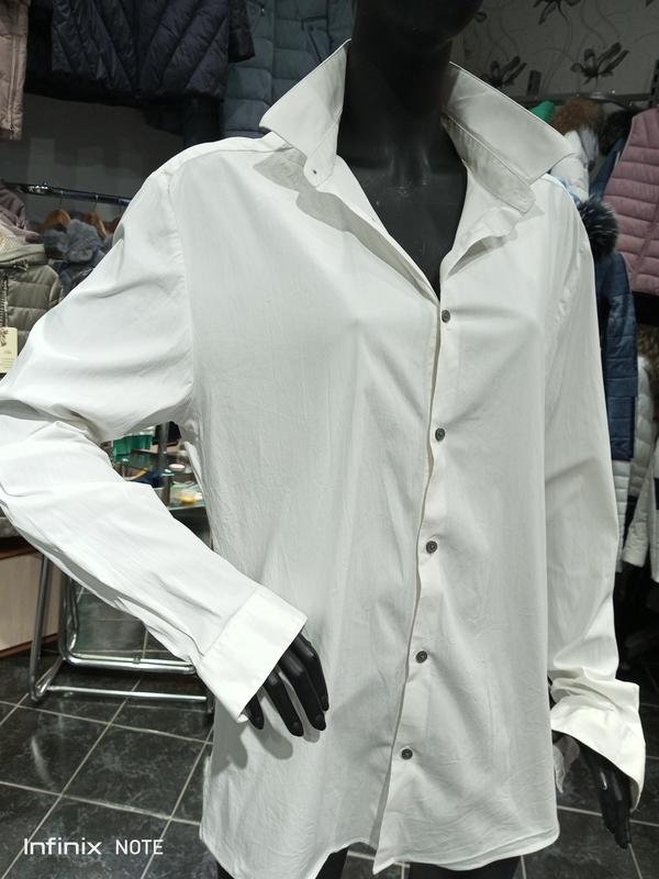 классная базовая рубашка, качество отличное, замеры пог 55,пот 50-52, ширина по низу 56, длина от плеча 73-76, рубашка стрейчевая и тянется, вся по фигуре супер, состояние идеально 🌸