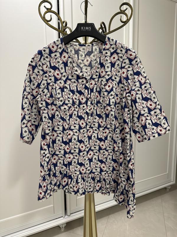Рубашка с карточным принтом. Асимметричная. Одна сторона чуть длиннее второй. Не много тянется Грудь - 126 Талия - 114