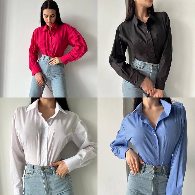 ФОТО РЕАЛ❗️ Боди - рубашка Модель 519 Ткань: коттон (трусики стринги из вискозы) Размер: 42-44, 44-46 Цвета: черный, белый, голубой, малина Нереально стильный боди Базовый, качественный, подойдет под любой образ (юбка, джинсы, классические или кожаные штаны...) Это просто "must have" в гардеробе Трусики выполнены в виде стрингов из вискозы, чтобы было комфортно, на двух кнопках) Сделано с заботой о вас Наляжной платеж с предоплатой 200 грн ✅