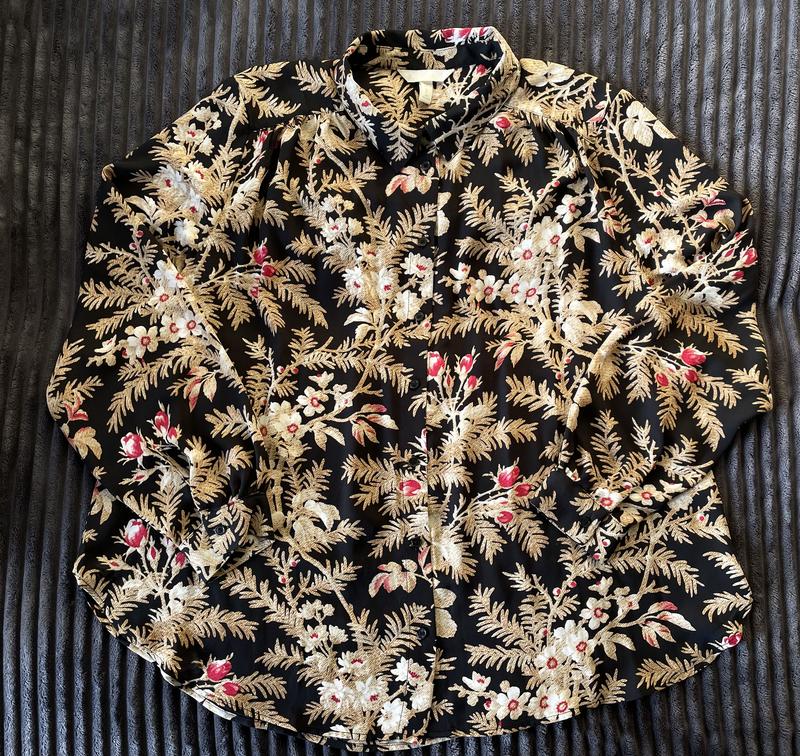Нова сорочка H&M в квітковий принт, без дефектів і нюансів. Є запасний ґудзик на бірці. Заміри: Розмір - XL Довжина - 72 см Рукав - 61 см Півобхват грудей - 68 см