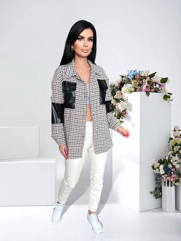 Рубашка с эко кожей Модель: #4028 Материал: турецкий кашемир высокого качества Размеры: 42-46,48-52 ➡️42-46: ОГ 116 см, длина по спинке 75 см, длина рукава горловины 75см Размеры: 48-52 ➡️48-52: ОГ 122 см, длина по спинке 75 см, длина рукава 75 см