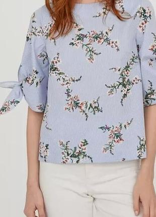 Голубая хлопковая блуза H&M с цветочным разрезом, летний топ, повседневный Размер XS,XXS