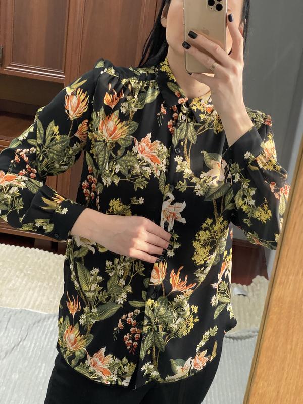 Неймовірна блуза в ідеальному стані, з стильним принтом Довжина рукава від плеча 60 см Півобхват в грудях 55 см Довжина сорочки 65 см 100% поліестр
