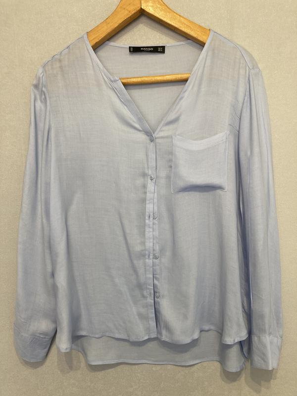 Очень классная рубашка, мягкая ткань, б/у Размер S/М, 100% вискоза Цвет нежно голубой Спинка удлиненная Замеры Плечи 39,5 Рукав 59 Длина 61/69см Ширина под руками 50