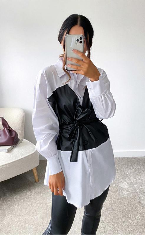 Платье-рубашка. Новая Размер S, подойдет и на М. Ткань – эко-кожа + плотный хлопок. Платье-рубашка выполнено с корсетом из эко-кожи, корсет застегивается на пуговицы! Ткань не просвечивает! ☺️ Пишите - сброшу больше фото