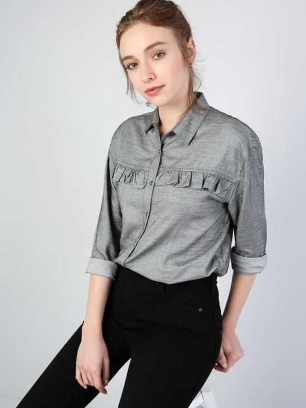 Рубашка с длинным рукавом Colin's Размер S ОПИС • Стандартный крой • Длинные рукава с манжетами • Застежка - пуговицы • Декор – рюши • Состав: 100% вискоза