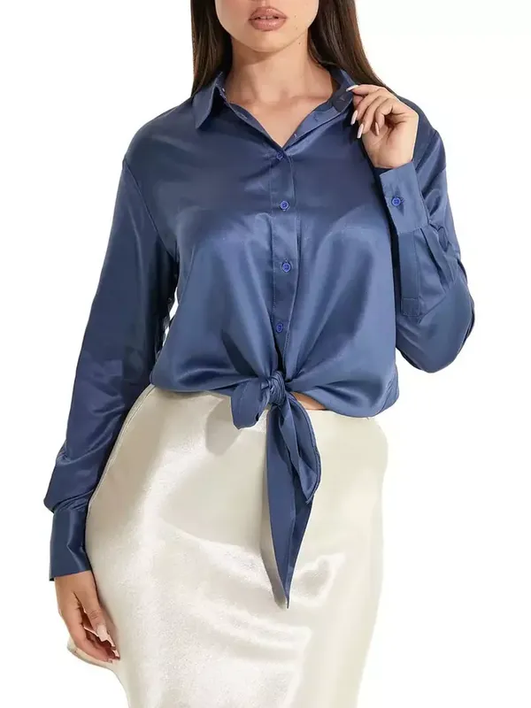 Елегантна сорочка із колекції Guess. Модель виготовлена з гладкої тканини, прямий фасон. Модель із коміром. Рукави з манжетами на застібці. Склад: 100% поліестер. М: ширина плечей 46, обхват грудей 114, довжина рукава 62, середня довжина 62;