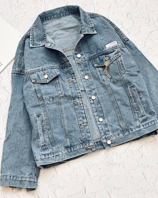 Куртка - Модель: 6678 - Фабричный Китай - Размер: Универсальный (42-46) - Тканина: джинс + брошка - шпилька - Цвет: голубой - Замеры: Длина по спинке 63 Рукав от горл 74, ПОГ 55 см