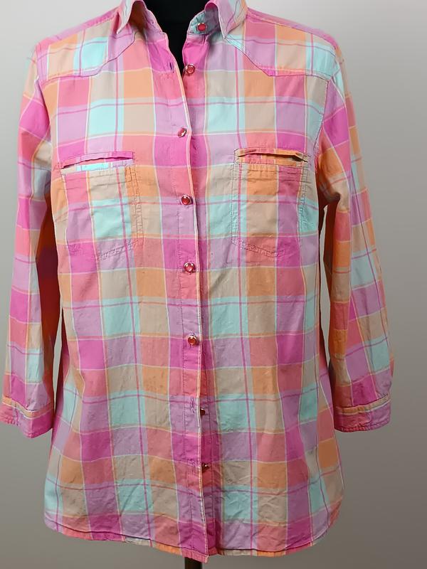 красивая рубашка в клетку, перламутровые пуговицы ,пог 48 длина 64 рукав 46
