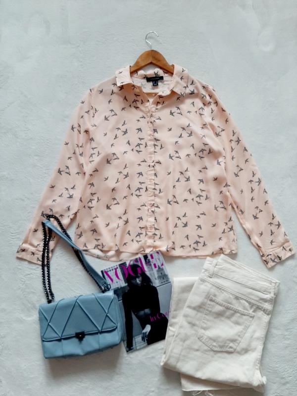 Рубашка пудрового цвета с принтом.Размер L.