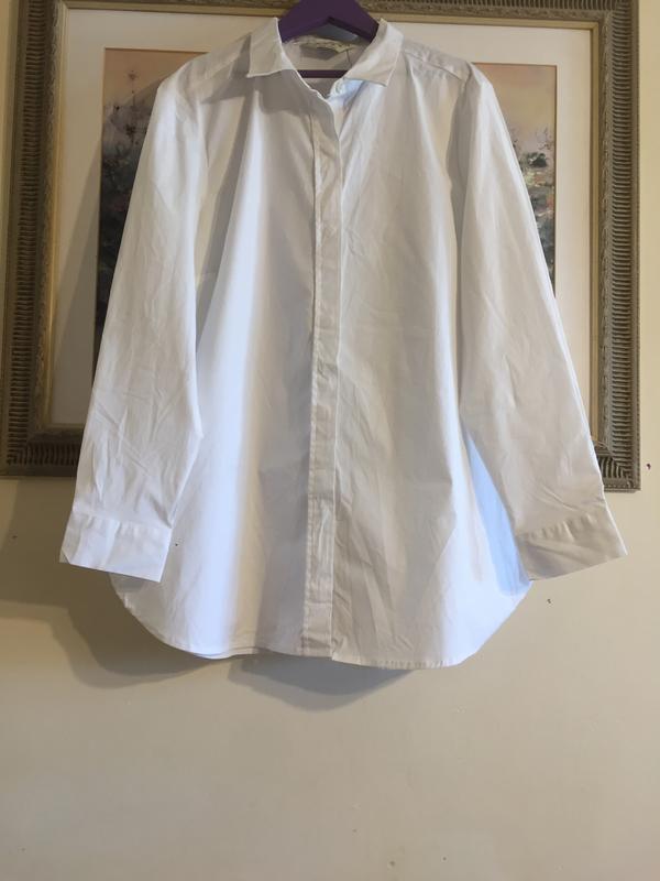 Великолепная белая рубашка (с биркой) от Primark , есть фабричный нюанс, внизу под рукавом , последнее фото( в носке не видно) , рубашка супер! Пог 59 см, длина 77 см по спинке, рукав 61 см. , плечи от шва до шва 44 см. Красивая, а нюанс вообще не видно в носке, вы будете довольны