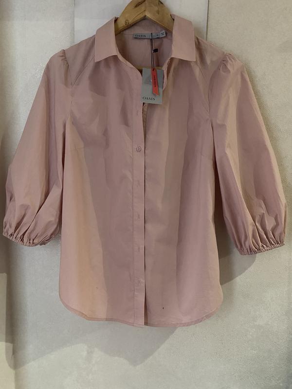 Жіноча сорочка блуза, 100% котон пудрового кольору , на ґудзиках , рукавчик на резиночці, прямого крою , без виточок . Заміри додам за запитом .
