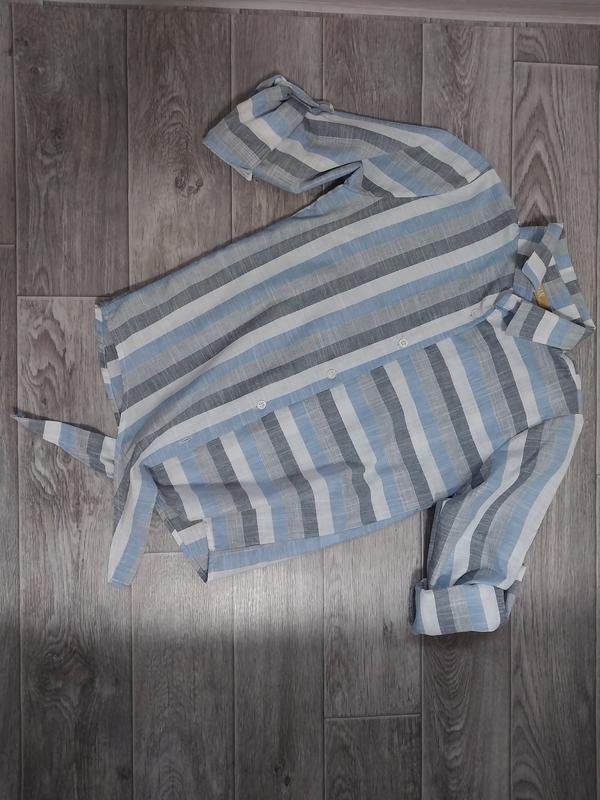 Новая рубашка в полоску. Рукав подкатывается, в низу подвязвается. Ткань тонкая, не жаркая. Можно носить как под маечку так и отдельно.