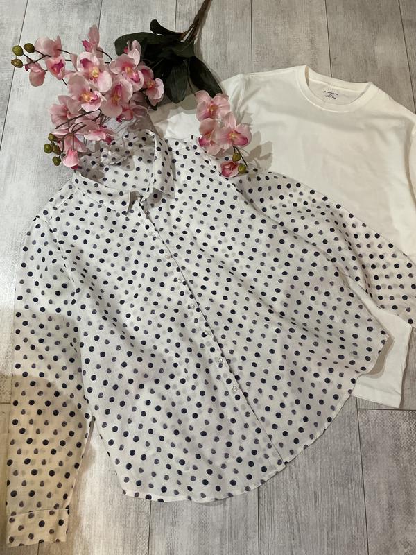 Фірмова лляна сорочка біла в актуальний на сьогодні горошок фірми Monsoon, в ідеалі! Стан нової речі, білесенька, горохи різної форми, яскравіші та світліші, стильна! якість чудова-100% чистий льон! Довжина 69, ПОГ 62,5, плечі 44,5, рукав 61 см
