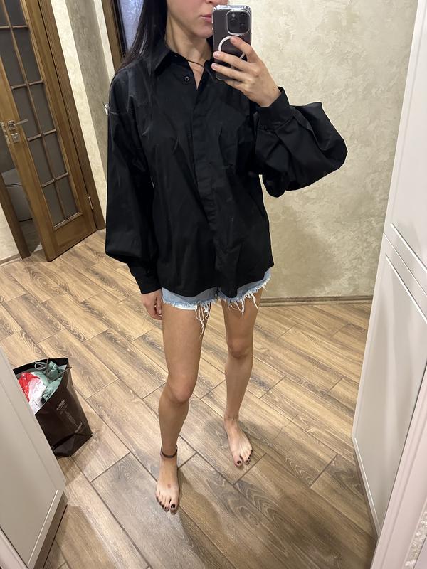 Чорна рубашка іде оверсайз з об’ємними рукавами Дуже легенька і приємна до тіла Можно і під спідницю чи брюки