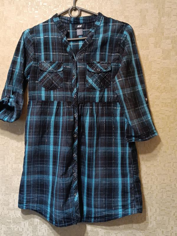 в клетку с люрексом под грудью отрезная на сборке рукав три четверти розмер S рост 170