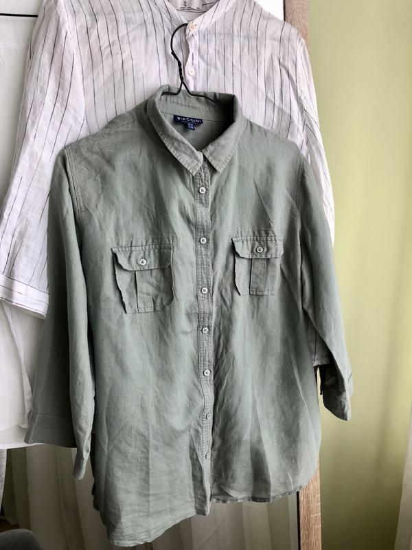 Легесенька лляна сорочка дуже приємна до тіла і невагома на літо прекрасний варіант ,розмір М можна Л стан чудовий пог 49 см рукав вкорочений 47 см довж 68 см