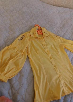 Блузка красивого желтого цвета, рукава выполнены фаариком, подойдет на размер м