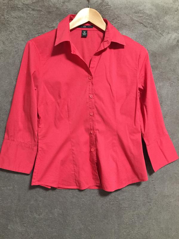 Красивая рубашка насыщенного розового цвета, слегка приталенный крой. Рукав 3/4, широкий манжет. Размер S. Ширина по нижней пройме- 45 см, длина рукава- 46 см, длина- 58 см