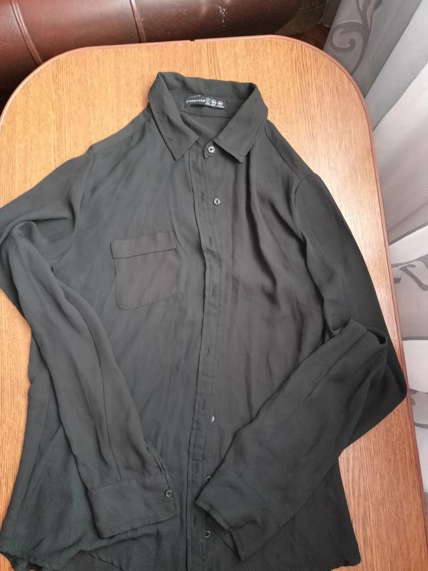 Черная легкая женская рубашка. Заміри на фото. Также в наличии по доступным ценам есть футболки, блузы, юбки. XS, S, M, L.