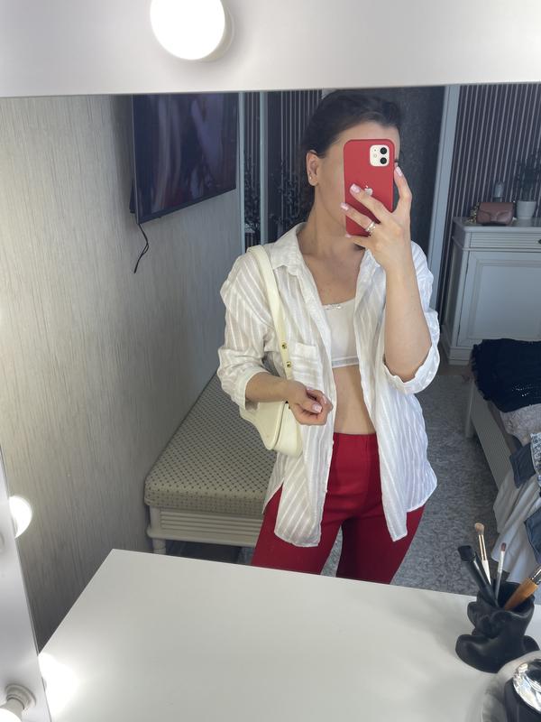 Белая рубашка, в полоску, красивая ткань, на лето дууже стильная и легкая
