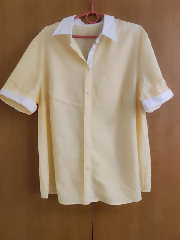 В цену входит оплата Шкафы. Состояние новое, дефектов не существует. Ткань коттон, не тянется, Цвет - желтый в белую черту, как на фото Размер не указан но смотрите по меркам. плечи 44 см полъем груди 66 см полхват талии 62 см полхват бедер 67 см длина по центру спинке. 70 см длина рукава 26 см, пол обхват рукава 21 см