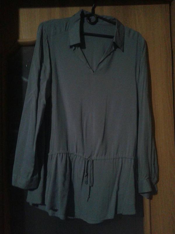 Рубашка туника 48р. Длинна 78 см Длинна до пояса 56 см ПОГ 53см По бокам внизу карманы Ткань вискоза струится . Рукава с пуговками для укорочения.