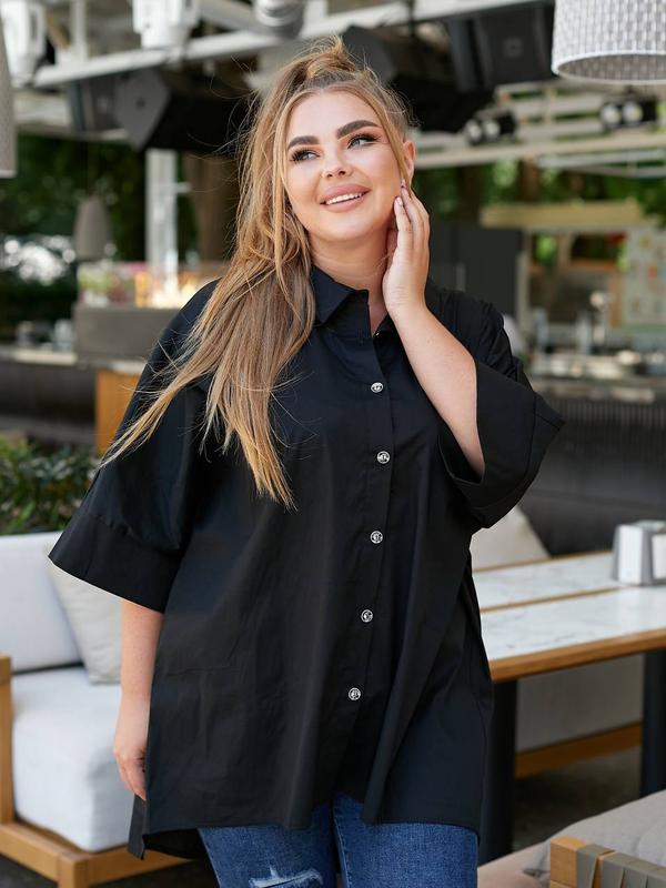 🔥Котонова сорочка -крій oversize -класичний комір -застібка на ґудзики -круглий поділ, спереду коротше ніж ззаду. Мод. 168 🇺🇦Ціна 920 грн Розміри : 48-52,54-58 Матеріал: коттон-поплін Натуральна дихаюча тканина, бавовняна сорочка дуже стильна та зручна Заміри на мод. 168 ✅48-52 ОГ 128 см., ОБ 140 см., Довжина рукава від горловини 50 см., Довжина 77/88 см., ✅54-58 Ог 140 см., Об 150 см., Довжина від горловини 53 см., Довжина 80/90 см.