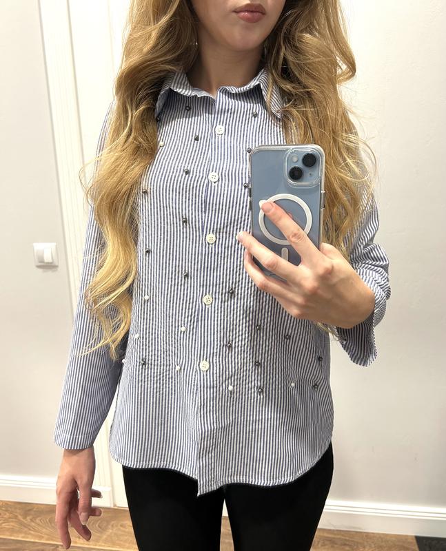 Натуральная ткань, приятная к телу. Замеры: длина спереди 59 см, длина сзади 66 см, длина рукава 53 см, ПОГ, ПОТ = 49 см. Стан идеальный, рукава подкатываются при необходимости.