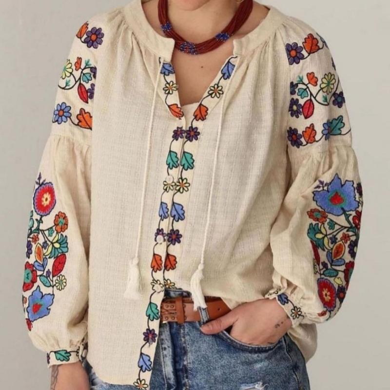 Рубашка лен с вышивкой, размеры S M L, полномерки,