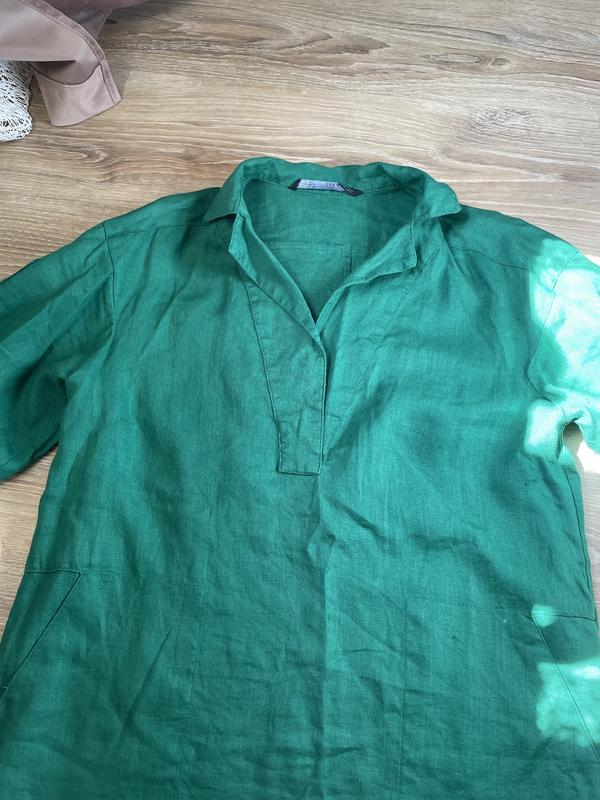 Чудова рубашка насичено зеленого кольору від Zara . Стан ідеальний, тканина льон. Розмір С, буде і на М. Подовжена, є кармани, рукав можна вкорочувати