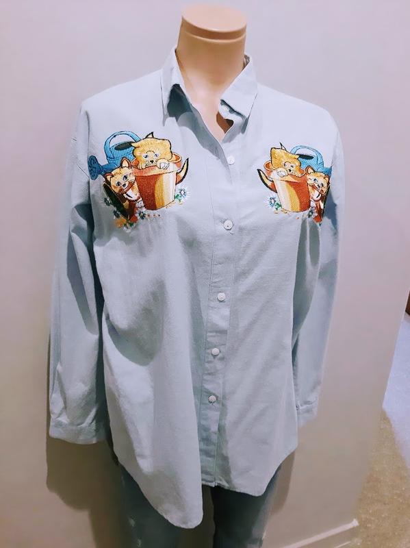 Фирменная рубашка с оригинальной аппликацией. 100% хлопок свободный крой разм.XXL 14-16 свободная модель пог 56 длина 75 плечи 49 рукав (спущенное плечо) 58 состояние идеальное