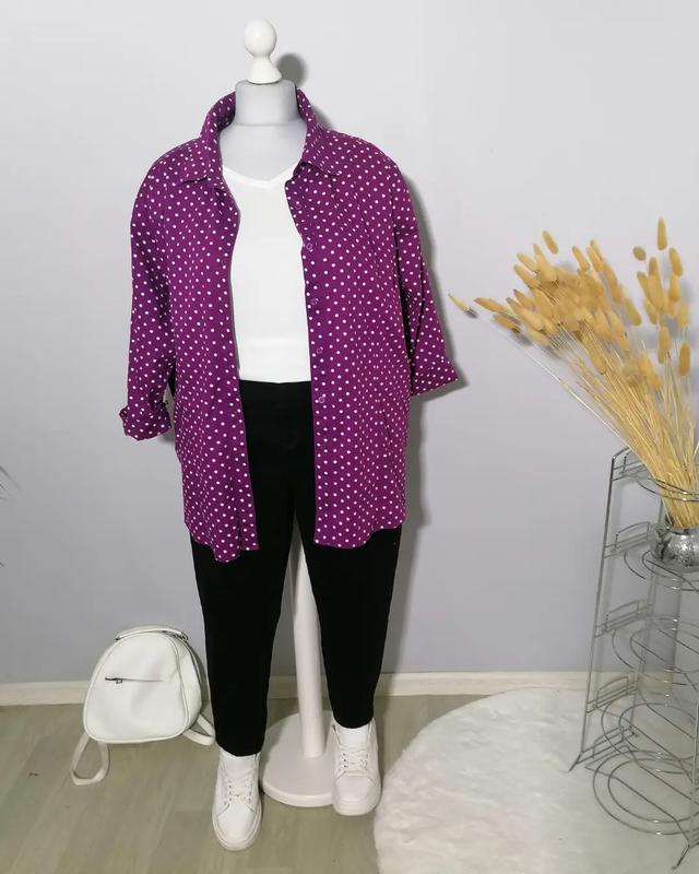 🌾Натуральная слегка стрейчевая рубашка р. 3x По замерам больше Грудь 170 Бедра 160 Рукав 3/4 Длина 80 🔖Цена грн