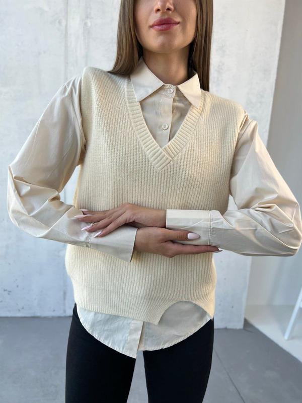 ▪️Жилетка + Сорочка ▪️Размир: 42-46 ▪️Тканина: ангора/котон ▪️Цвет: ▫️черный, молочный, ▫️серый, зеленый ▪️Цена : 800грн