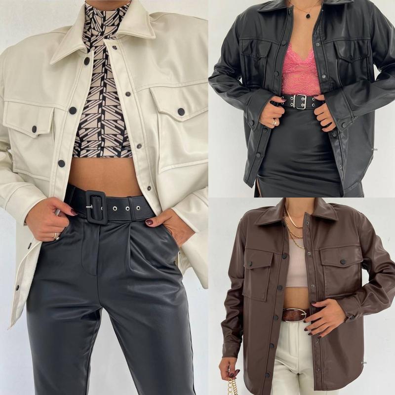 💥НОВИНКА💥 Кожаная рубашка Размер универсал (42-46) Качественная турецкая экокожа Черный, молочный, шоколад Отличное качество👍 ⬇️⬇️⬇️⬇️ Ціна:499 грн