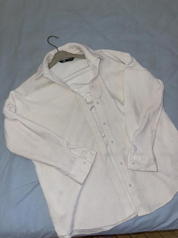 Велюровая рубашка от бренда ZARA Размер: oversize ( носила на следующие параметры: Объем груди: 81 Объем талии: 63 Объем бёдер: 88 Рост: 160) Есть небольшие пятна, на фото видно Была любимая вещь, подходит под все, особенно как дополнительный слой на майку или топ Бесплатная доставка при заказе от двух вещей!!!