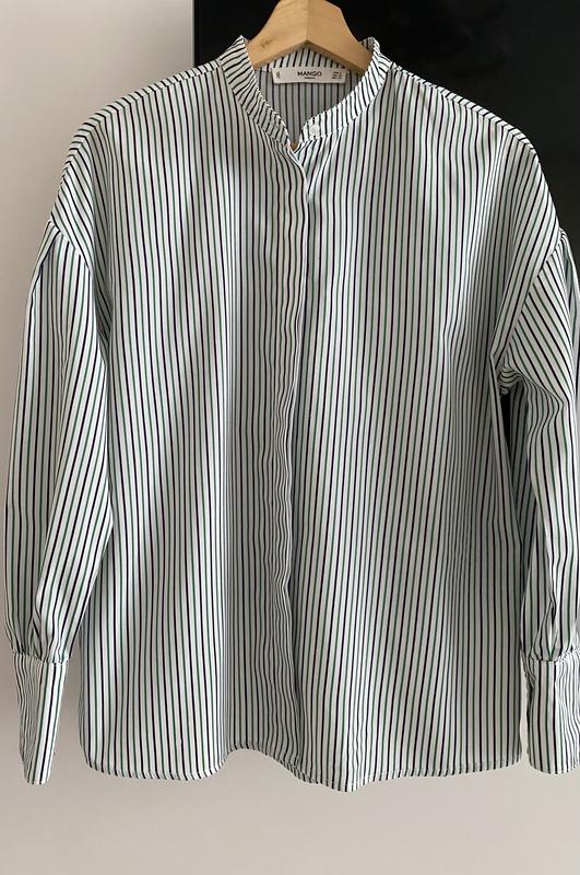Рубашка в красивом состоянии с акцентным рукавом в мелкую полоску, ткань плотная, держиттгарно форму