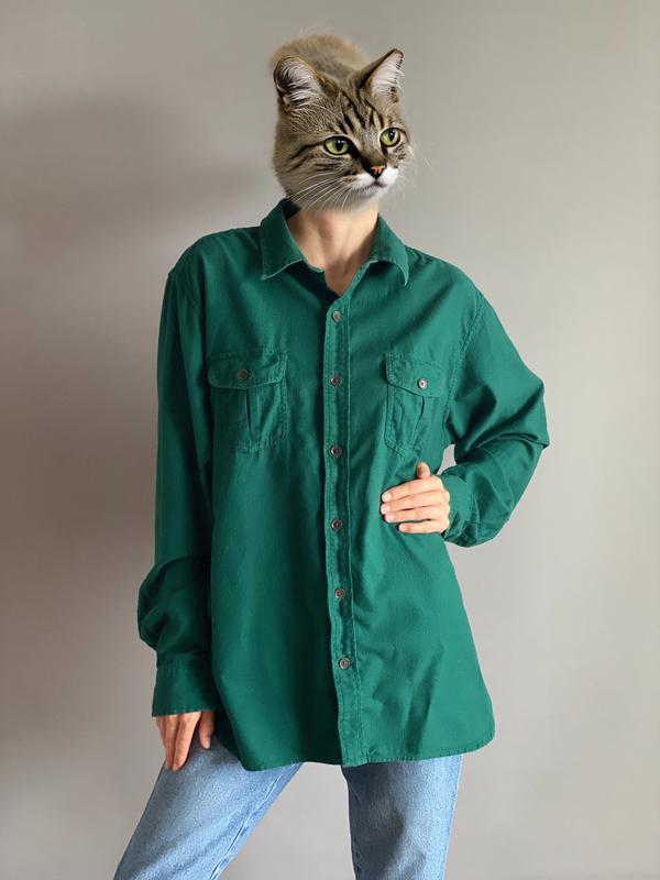 Cорочка Timberland Розмір L Ширина плечей 48 см Довжина спина 80 см Довжина перід 70 см Ширини низ 59 см Ширина в грудях 60 см Довжина рукава від плеча 66 см Довжина рукава під мишкою 50 см Ширини рукава в низу 11 см Ширини рукава біцепс 22 см Стан 4 з 5, так як матеріал специфічний, чуть з кошлатався.