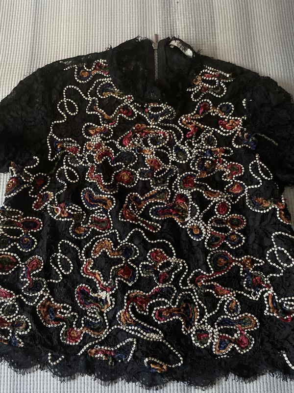 Черный топ Zara с молнией на спинке, вышитый перед. Размер S