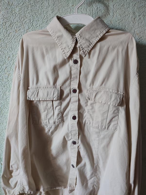 Рубашка не новая, но состояние 10/10, одевалась несколько раз. Все пуговицы на месте. - ог: 44 см - длина по спине: 58 см - рукав трикотажный: 50 см - 95% бавовна, 5% еластан