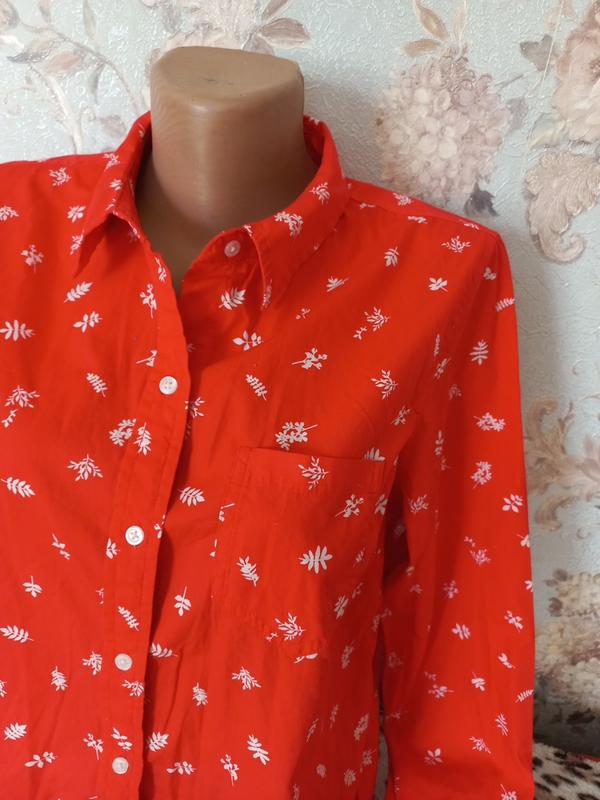 Рубашка очень красивого бренда, сотон невероятного качества. Структуровес, хорошо держит форму. Очень качественно пошита. Цвет красный (фото не передало). Длина 68см, плечи 40, пог 51, рукав 61
